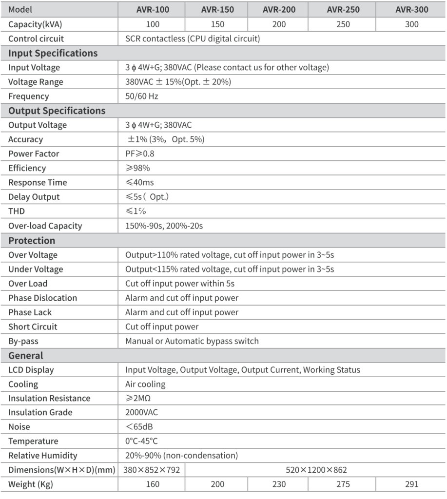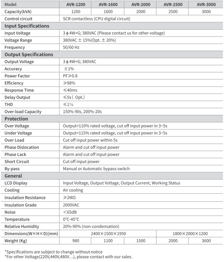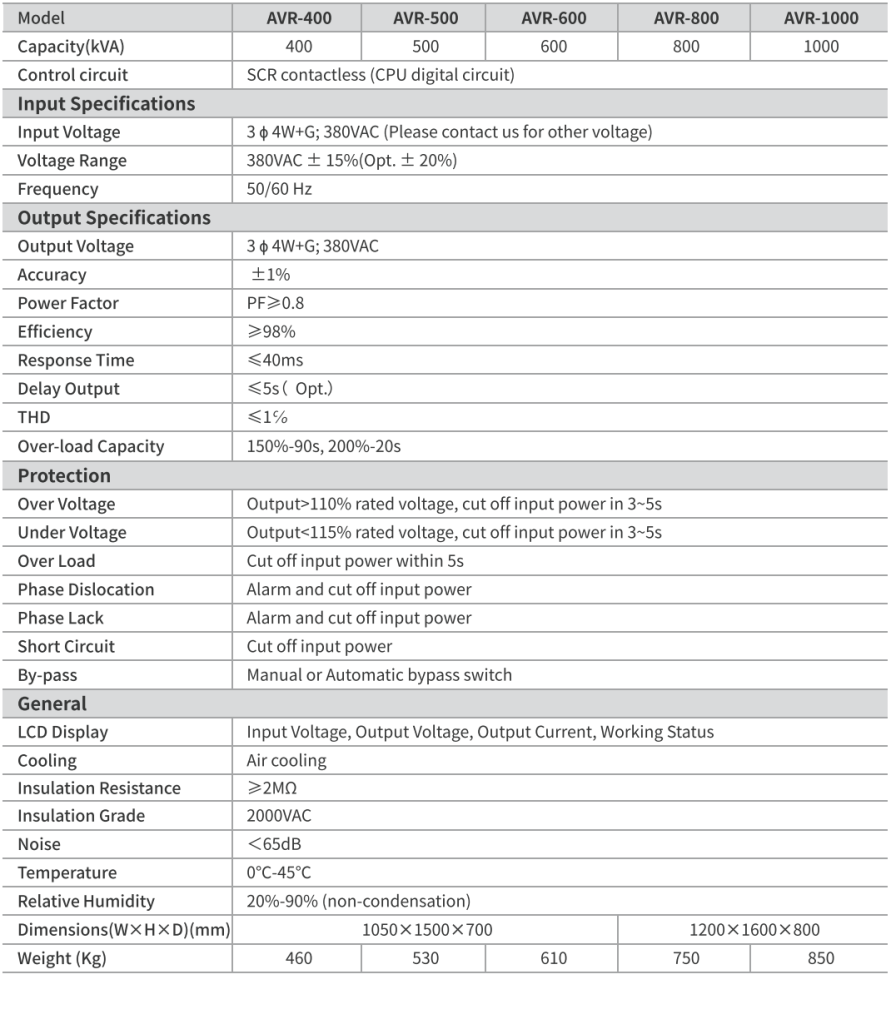 với dải công suất đầu ra từ 10kVA đến 3000kVA, áp dụng công nghệ ổn áp